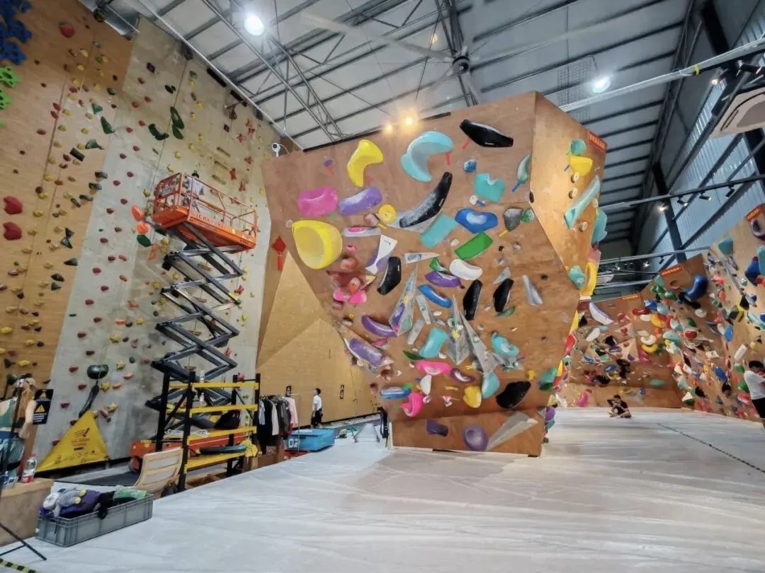 安全方面,攀岩馆在难度区配置了国际攀联赛事指定保护器品牌Perfect Descent的保险绳,并在抱石区铺设了超40厘米的软垫。岩壁上有人攀爬时,馆内教练都会时刻关注,避免意外情况发生。